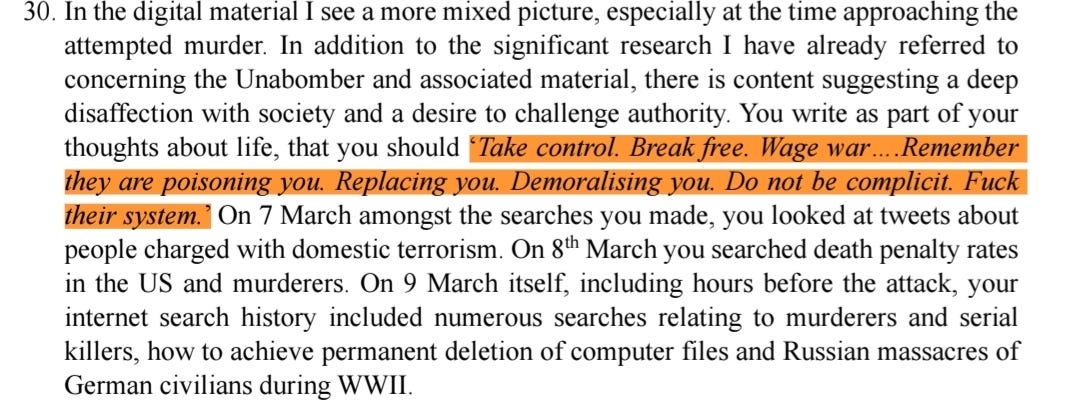 Sentencing Remarks from R v Joshua Bowles (highlight added)