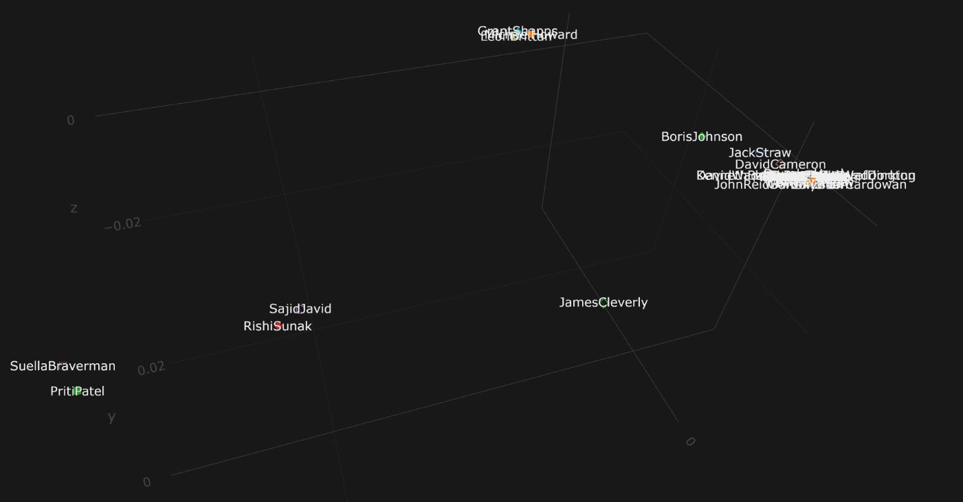 Prime Ministers and Home Secretaries over 1979-2019 in genetic coordinate space