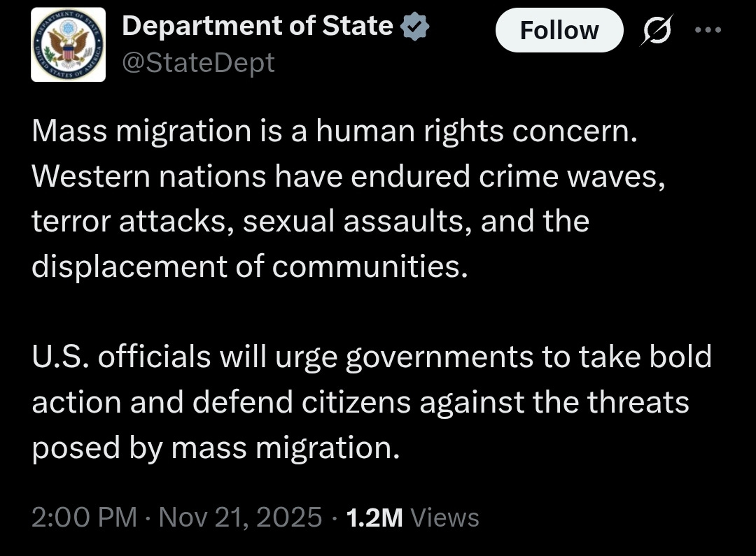 The US State Department attributes community displacement to mass migration